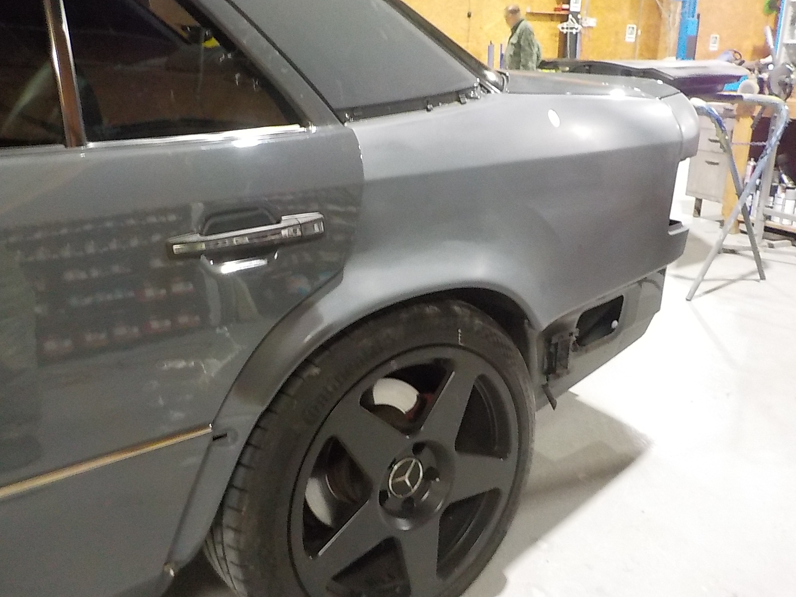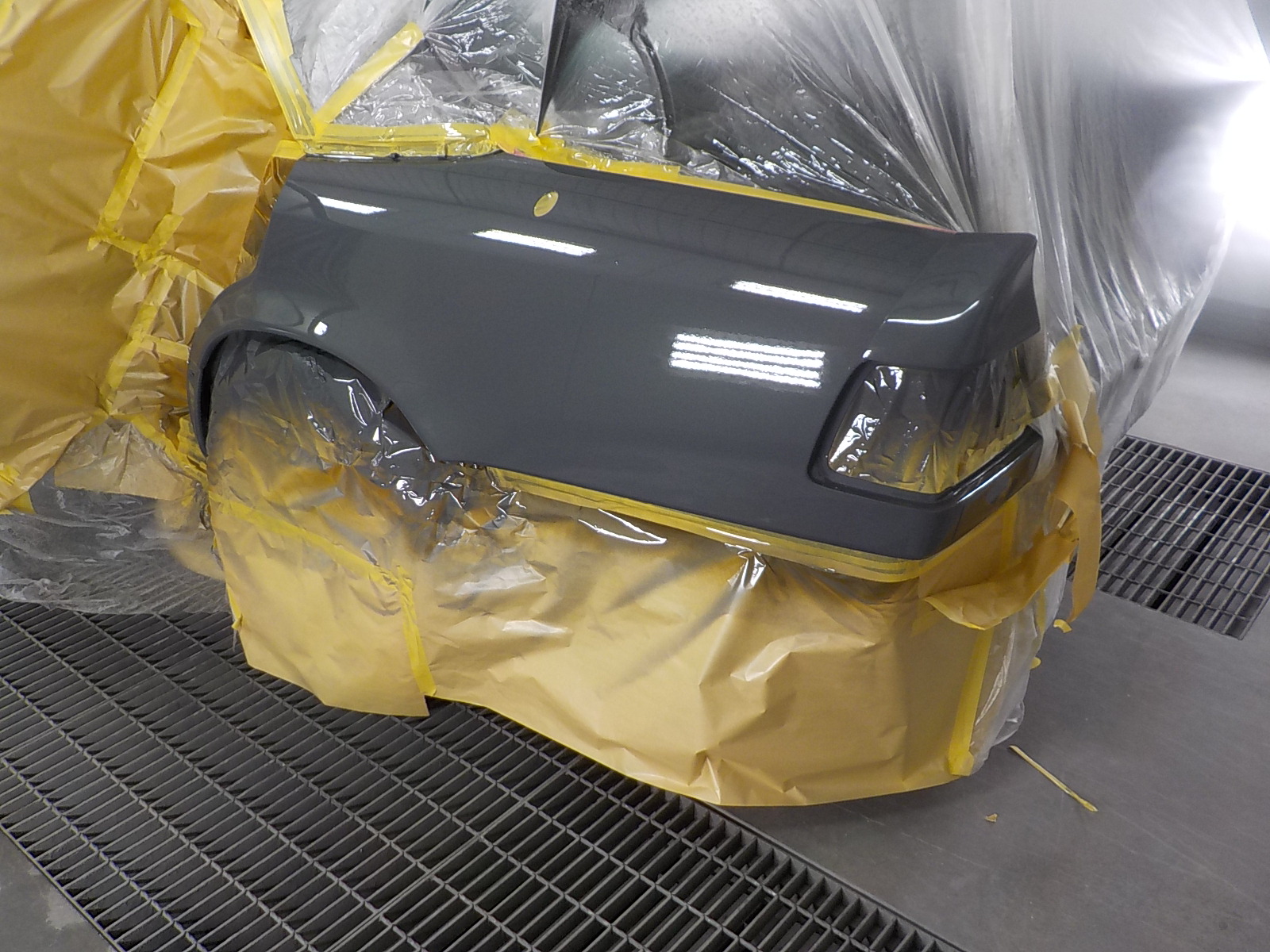 左クォーターパネルの修理も終わらせて、塗装の下処理作業に移ります。