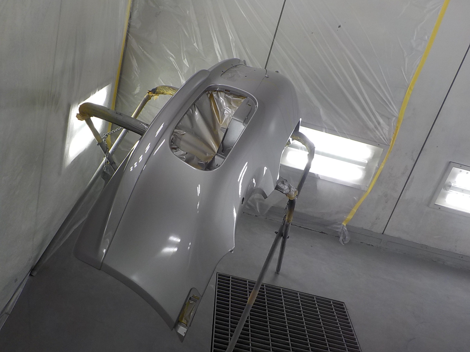 入念な下地処理を済ませて上下圧送式ブースにて塗装して行きます。