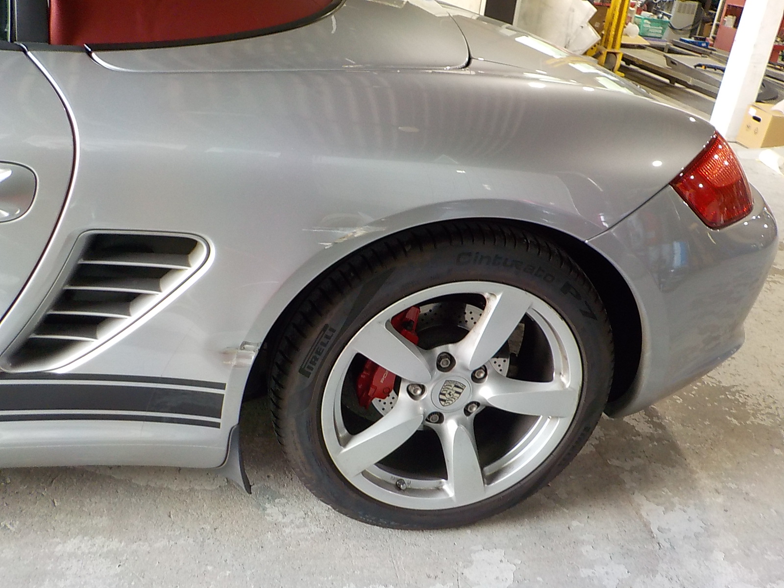 ポルシェ ボクスターS 左側面の鈑金塗装のご依頼です。