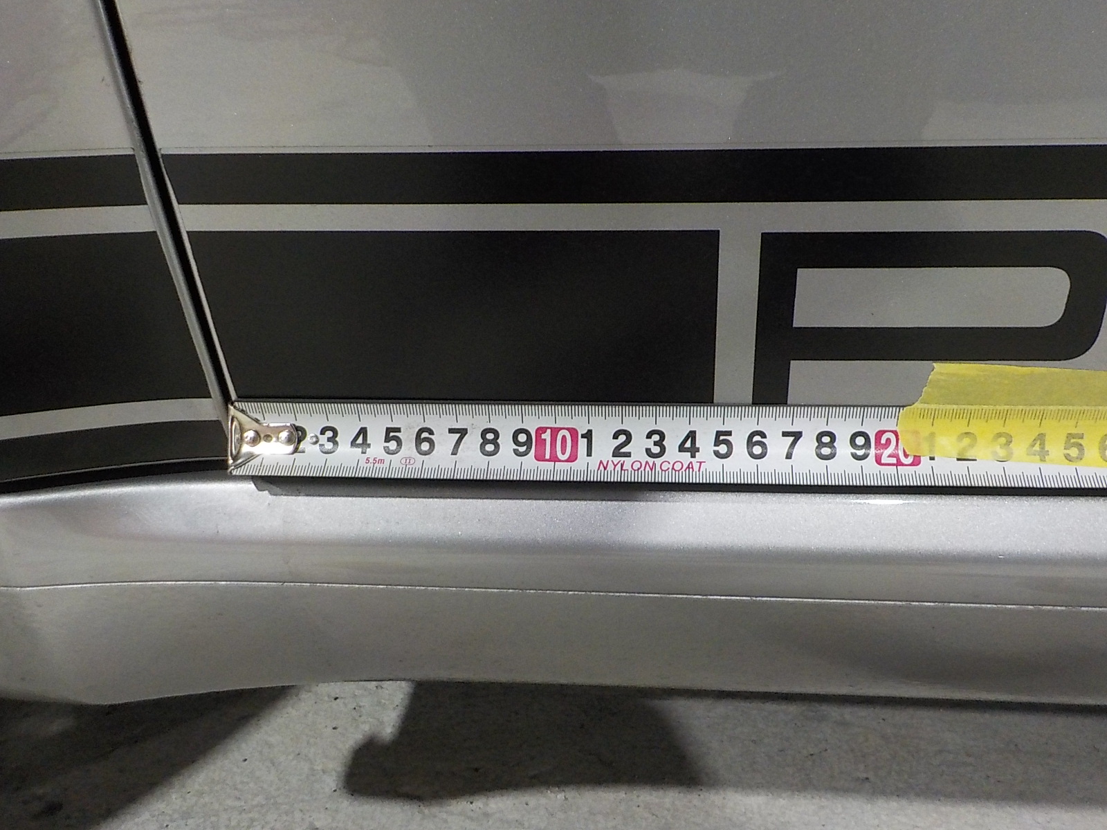 鈑金作業に入る前に、サイドデカールの位置を測ってから作業に入ります。