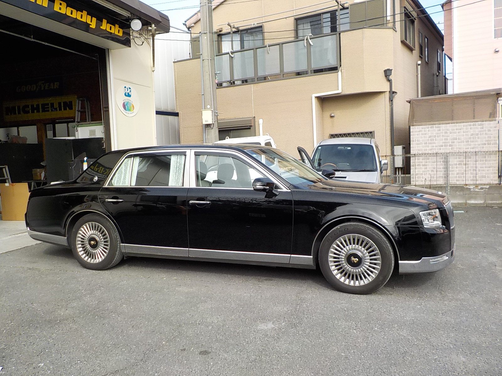 トヨタ センチュリー左リア廻り保険修理でのご依頼です。