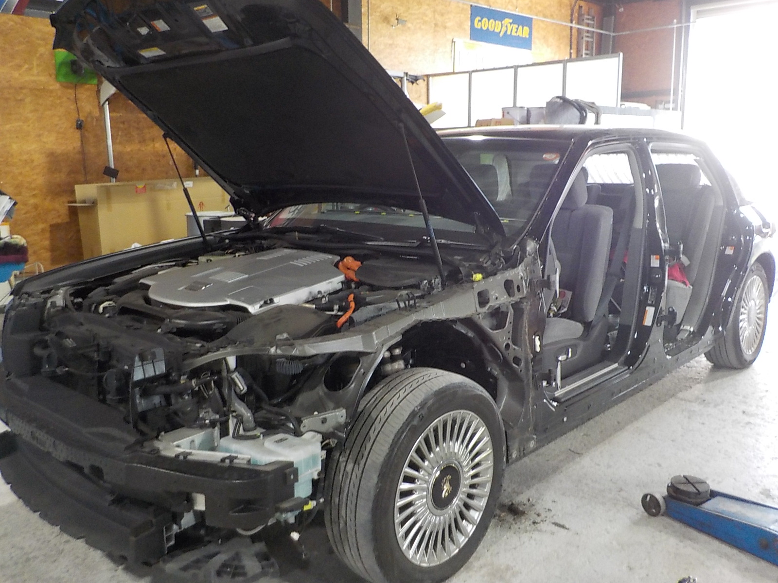 時間はかかりましたが、リアバンパー、タイヤホイールも本件の損傷と無事に認められたので交換、修理作業を進めていきます。この場合に限らず、損傷が一連したものでもひとつの事故として損害認定されないケースも多く、しっかりと保険会社と交渉する事をお勧めします。